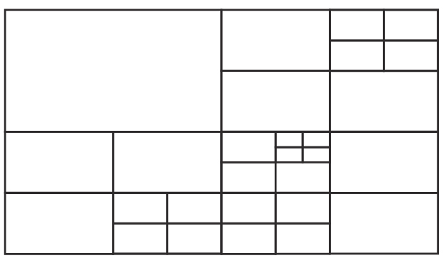 The Tiling Group controls the slicing and the adaptive aspect of the Mosaic. Two types of tiling are possible. When the Adaptivenessparameter is set to 0%, a classic tiling where all the cells have an equal dimension is achieved. With an Adaptiveness value superior to 0%, the algorithm starts to produce adaptive tiling with cells of multiple dimensions with an homothetic ratio.