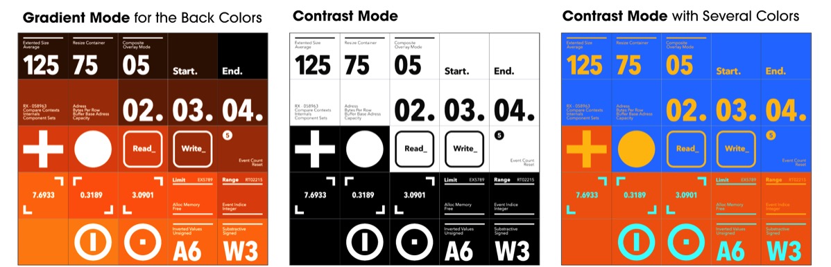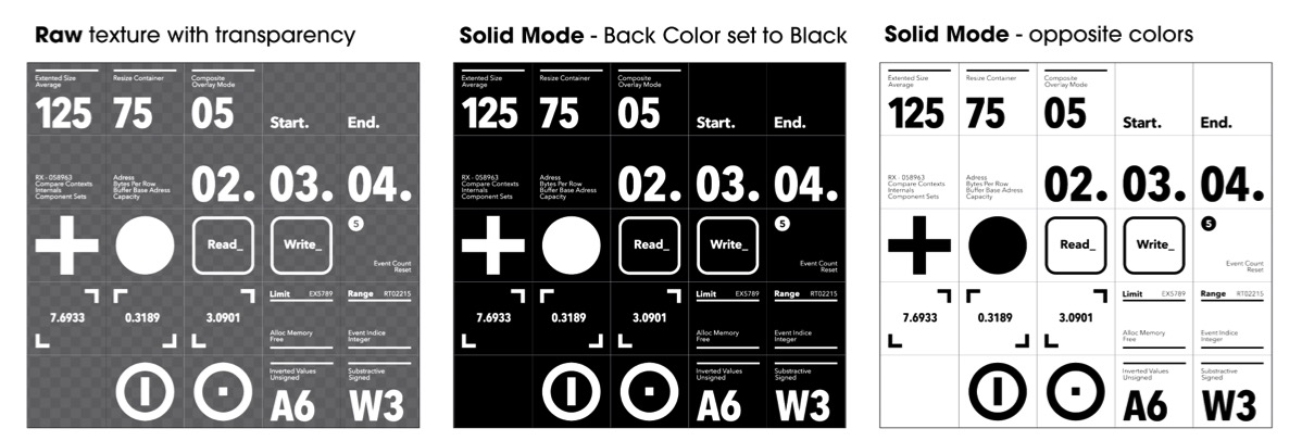 An assembly of light and bold cropped characters. It is visible by activating the Preview Texture option. The cell colors are customizable using the Material Colors Group.