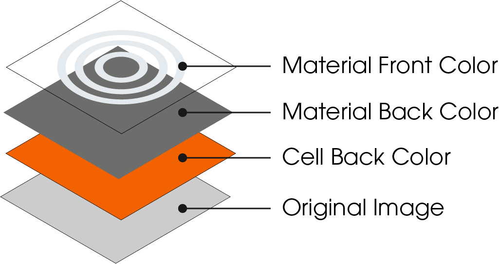 Notice if the Material Back Color is set to transparent, the Cell Back Color (Mapping Group) will appear through the transparent part of the motif. This feature lets you achieve complex color customization when for example you add Cell Padding (Mapping Group) to the motif.