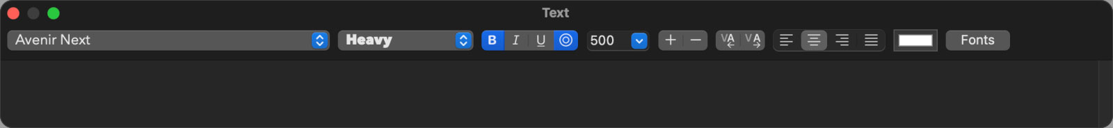 Most of the text editing shortcuts accessible in the toolbar affect the current selection. Make sure the text you wish to modify is selected before attempting any changes to its style.